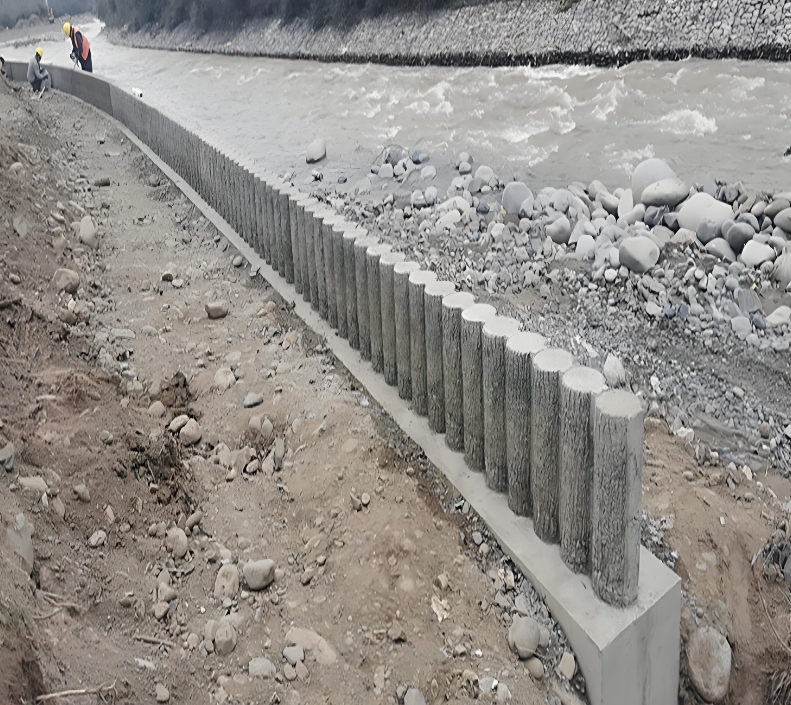 - 河道、邊坡的防滲擋土工程:比如小型河道的護(hù)岸,或邊坡防止水土流失時(shí),需要水泥樁形成連續(xù)的 “墻體”,此時(shí)樁與樁緊挨著打(間距 0),能避免水流從樁縫滲入,也能更好地阻擋土壤坍塌。這類(lèi)工程常用直徑 15-20cm 的圓形水泥樁,或方形水泥樁,緊排后密封性更強(qiáng)。