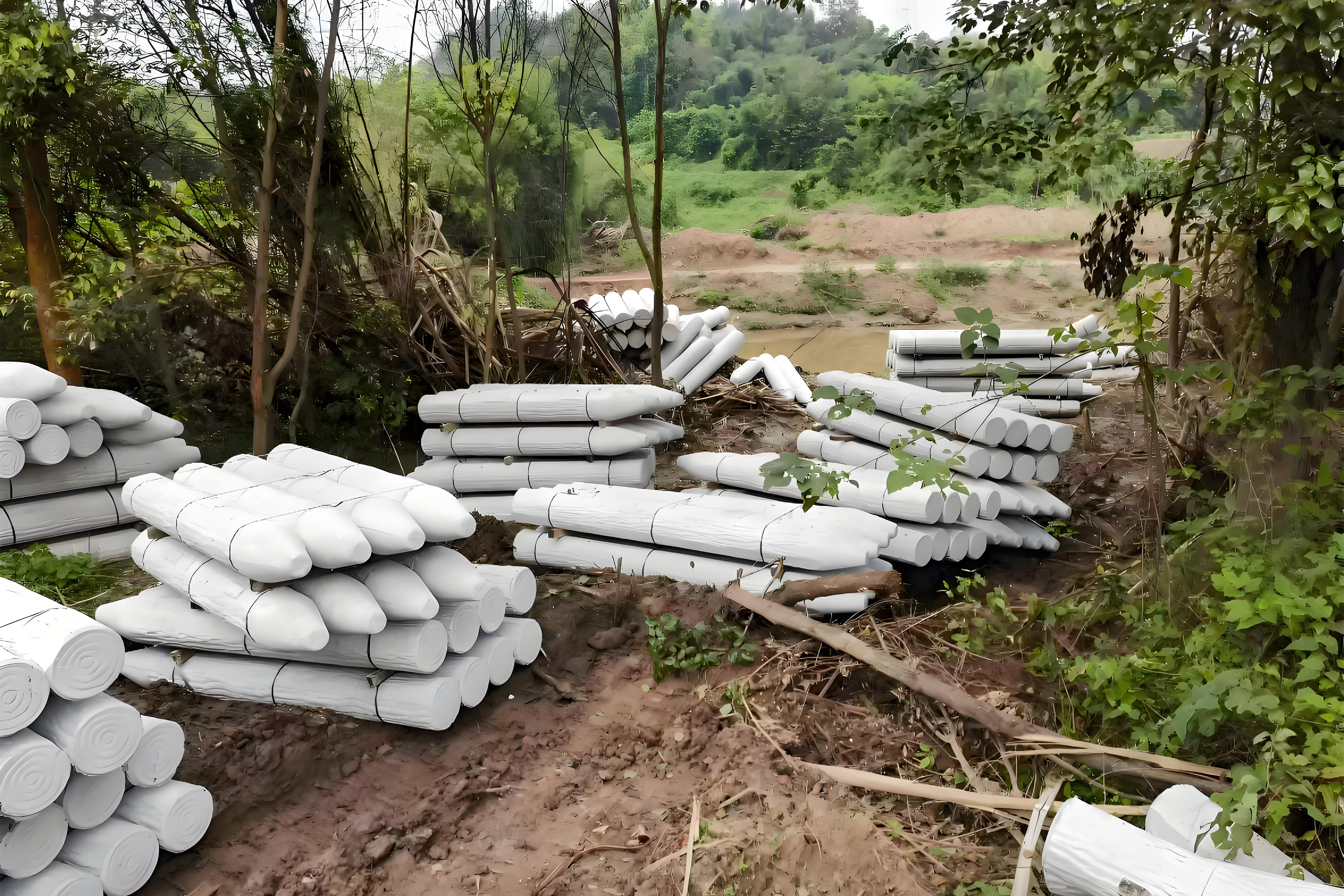 第二個(gè)風(fēng)險(xiǎn)是 “材料運(yùn)輸和存儲(chǔ)受影響”。汛期雨水多,仿木樁若露天存放容易受潮,影響后期安裝;運(yùn)輸時(shí)道路泥濘,也可能延誤工期。