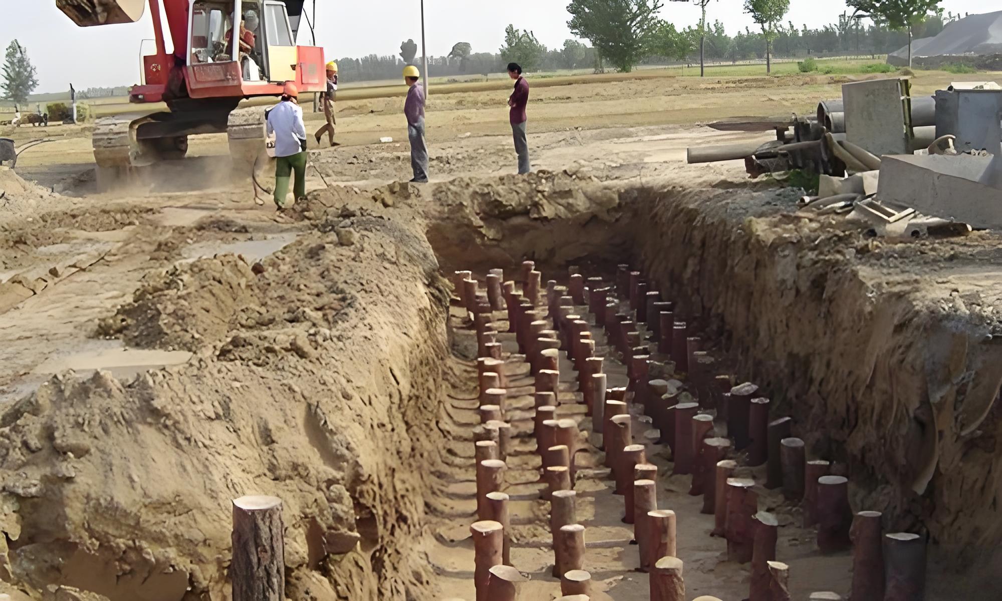 - 深度:必須打入深層堅實土層,入土深度不低于樁長的 2/3(比如 3 米長木樁,入土至少 2 米),避免樁底落在軟土層上;